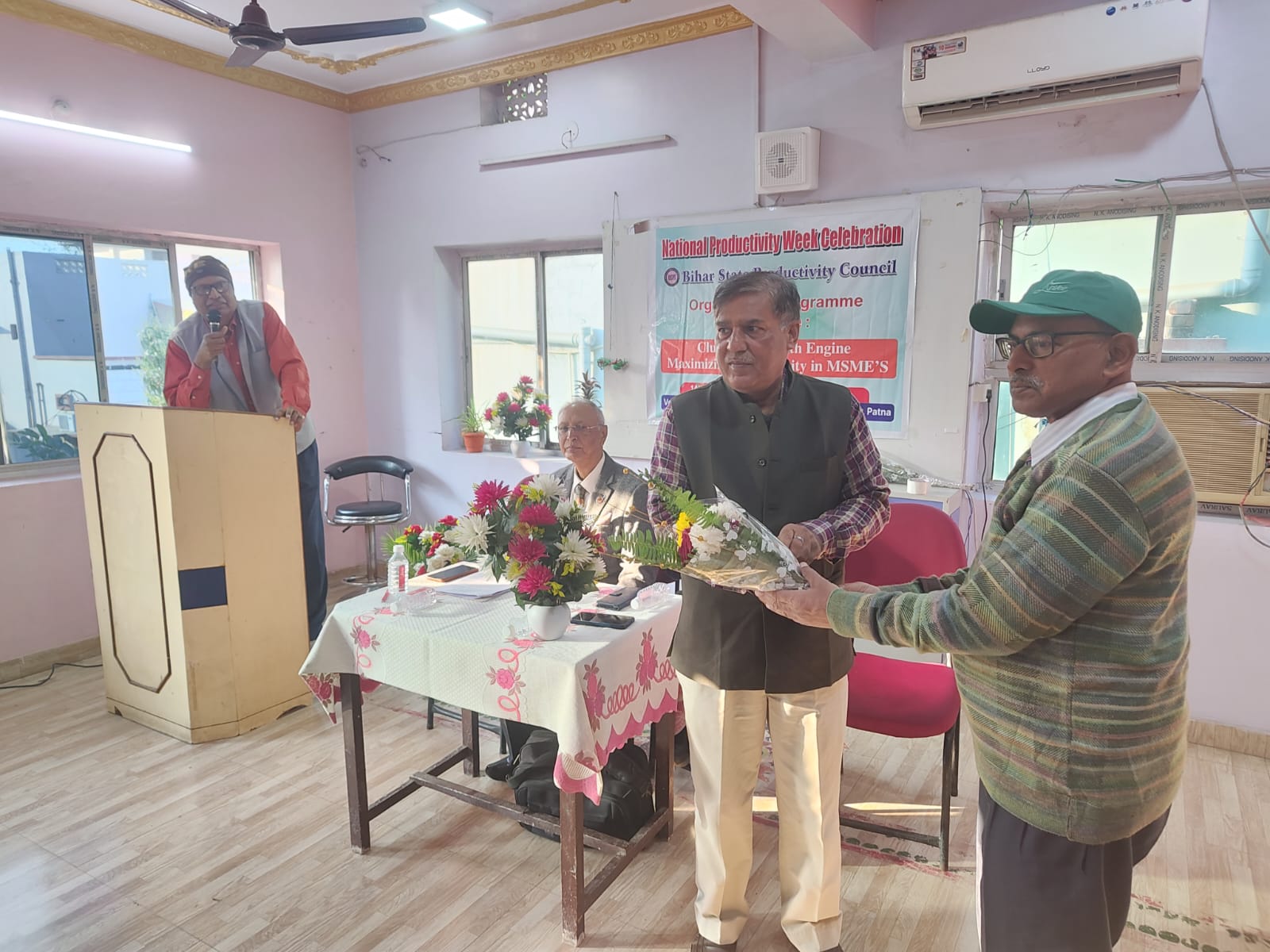Sec. Gen. BSPC, Adv. B.K. Sinha introducing the theme at Patna Dairy project premises on 15th February, 2019. Siting on the Dias from left Sri J.K. Singh of NPC, Dr. Janardanjee, Scientist(Rtd) ICAR, MD