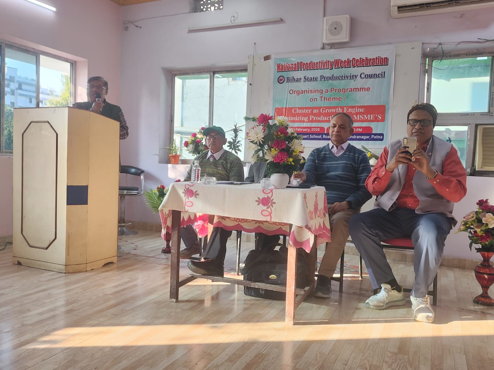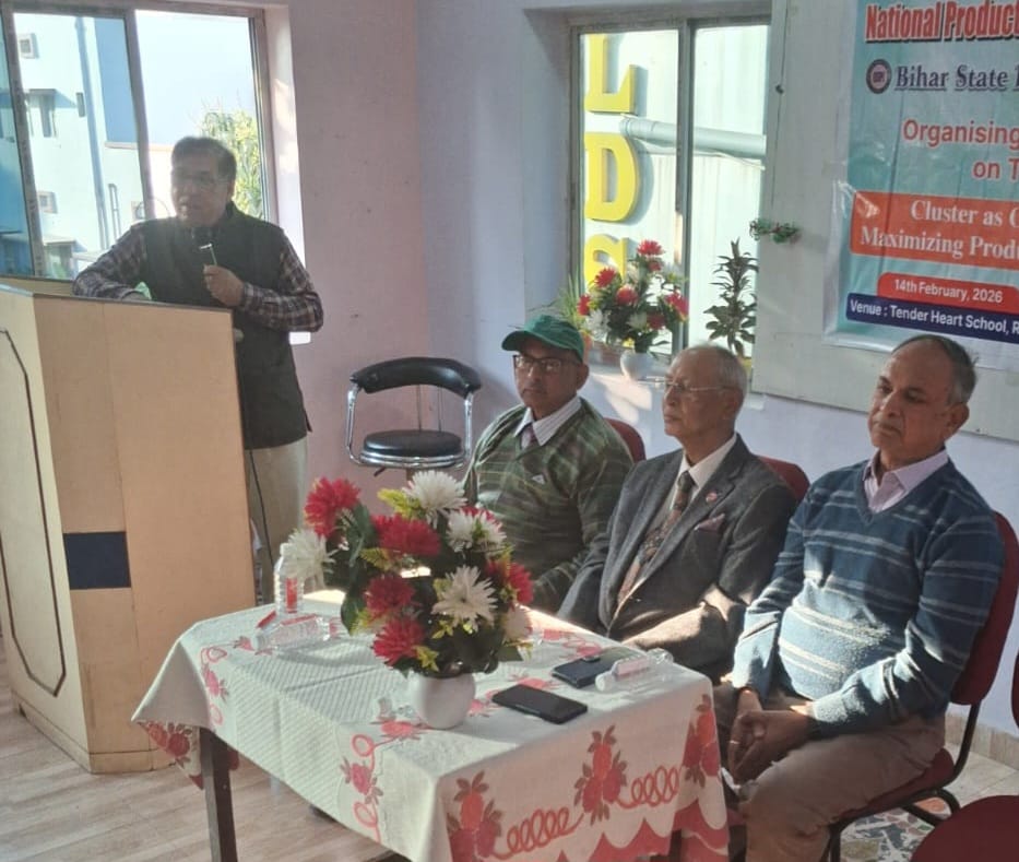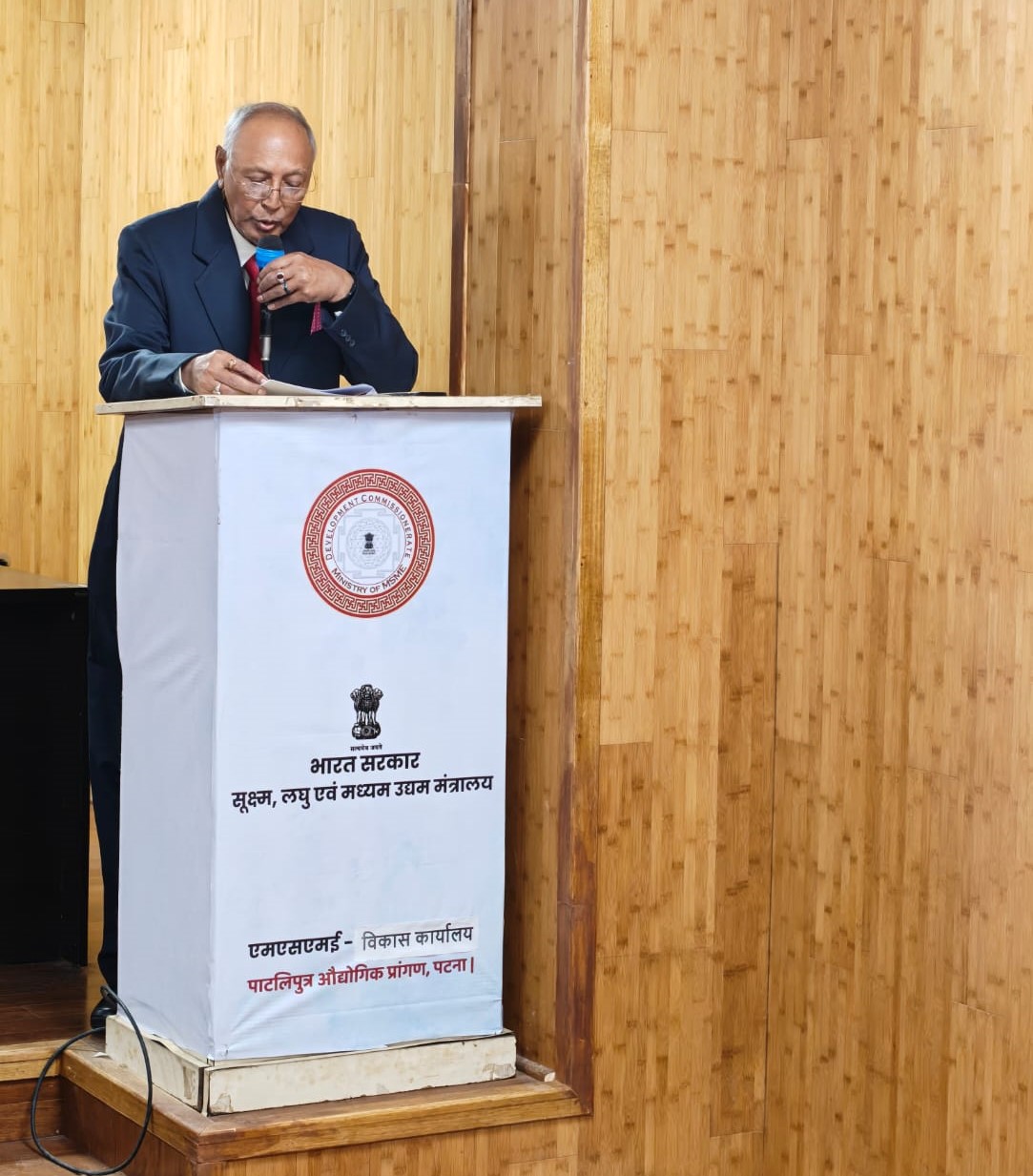 Sec. Gen. BSPC, Adv. B.K. Sinha introducing the theme at Patna Dairy project premises on 15th February, 2019. Siting on the Dias from left Sri J.K. Singh of NPC, Dr. Janardanjee, Scientist(Rtd) ICAR, MD